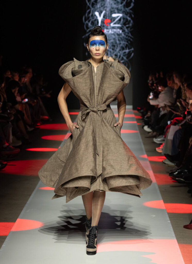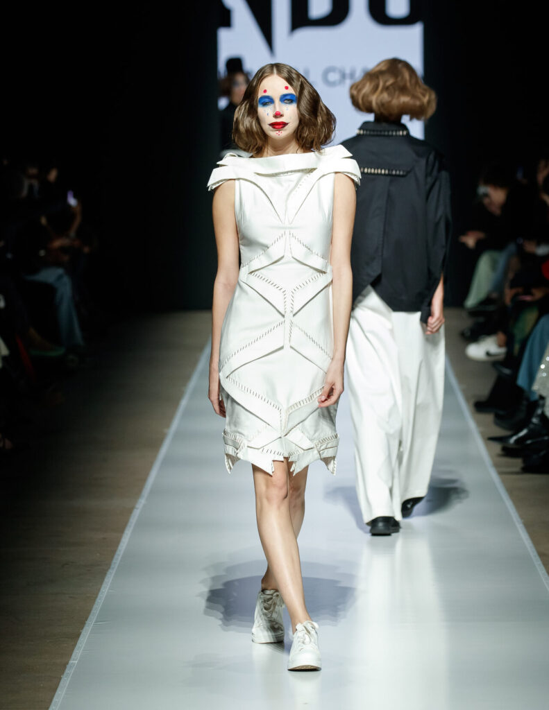 South African label Tshegofatso By Design brought the vibrant culture and aesthetic appeal of the continent to its collection. The collection brought together avant-garde and grunge styles, complemented by quirky makeup.