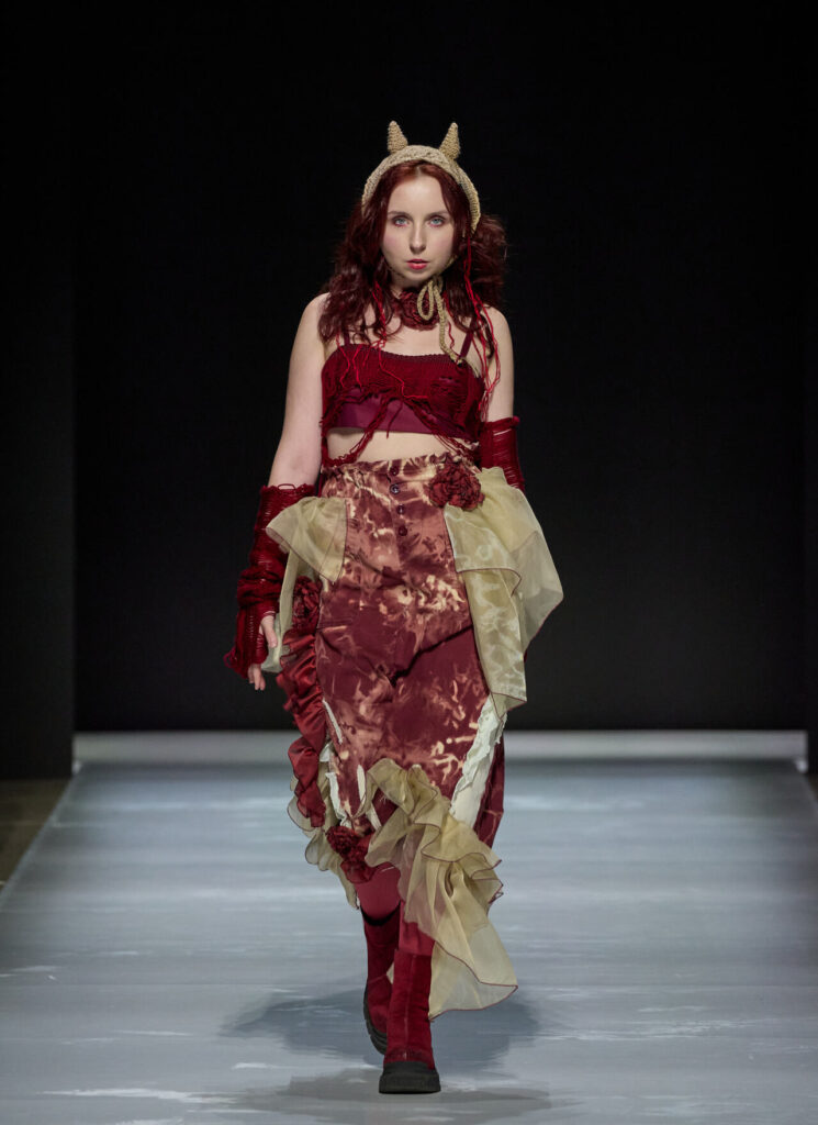 by /DAS/ from Moscow caught our attention with a collection that utilized repurposed materials featuring Slavic folklore through a contemporary perspective. While deconstruction was the core of the collection, the styling and purpose behind the collection gave it a truly metaphorical personality.