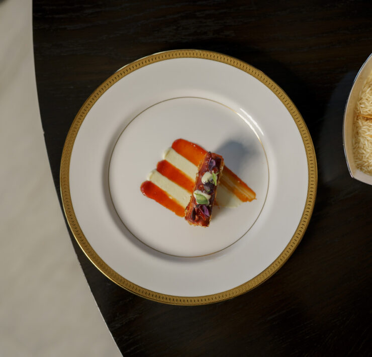 A wickedly indulgent creation with sweet dough, almond popcorn cream, macadamia nuts, roasted corn praline, miso caramel popcorn, and whipped popcorn ganache, the ultimate balance of crunch, creaminess, and cinematic fun.